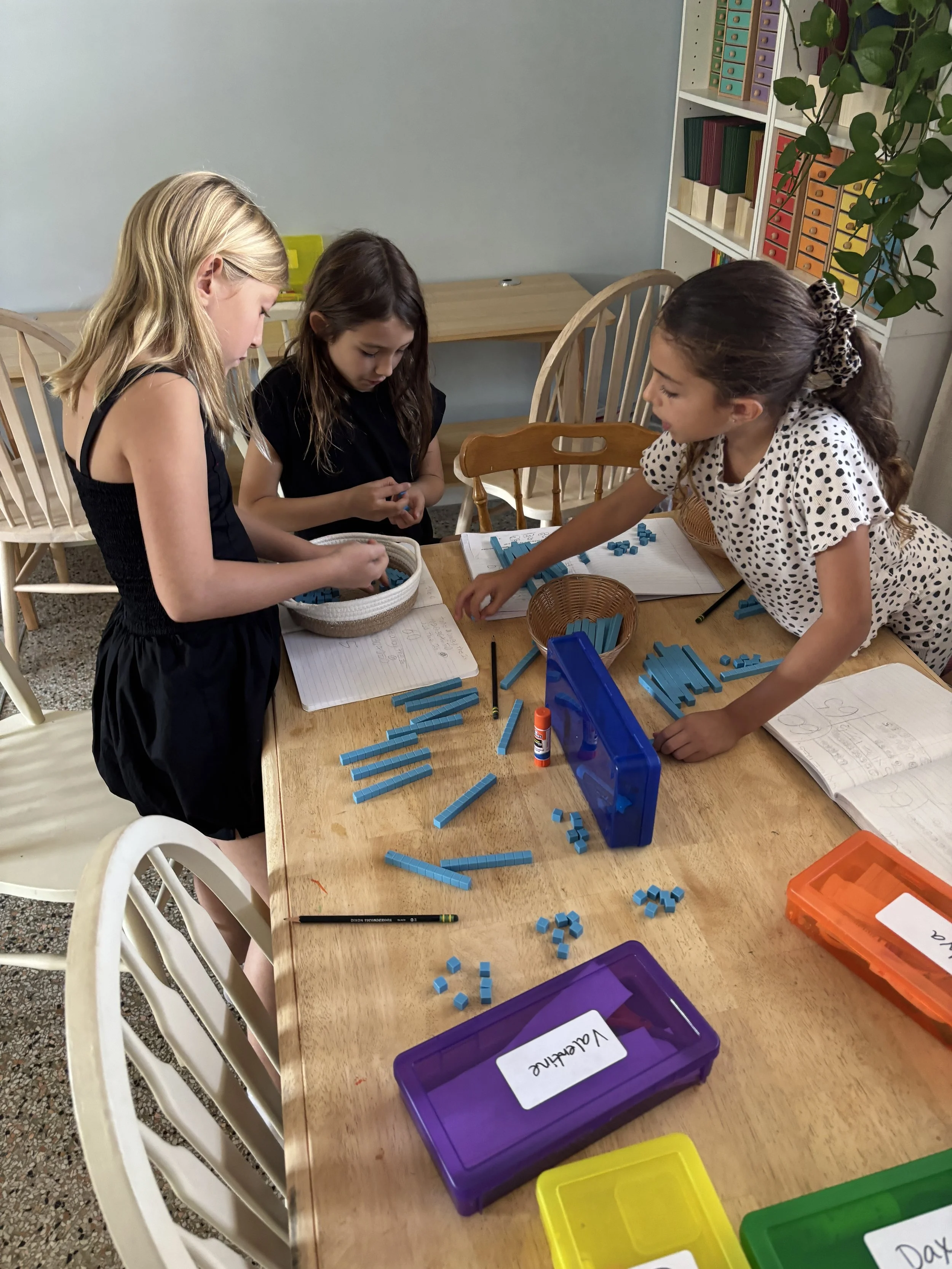 Our math program, grounded in Cognitively Guided Instruction (CGI), builds strong number sense, problem-solving skills, and mathematical reasoning. Students explore real-world problems and use a variety of strategies to solve them, developing deep conceptual understanding rather than memorizing steps. Through hands-on activities, math talks, and guided exploration, children learn to explain their thinking, make connections, and see math as creative, logical, and relevant to everyday life. This approach nurtures confident mathematicians who can think flexibly and tackle challenges with persistence.